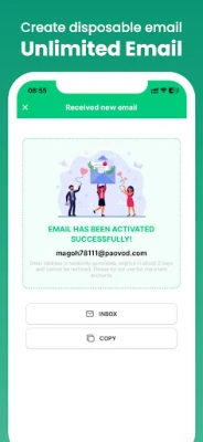 Using Instant Mail - disposable mail app, you can instantly generate disposable temporary email address and immediately receive emails, including photos or any other attachments.