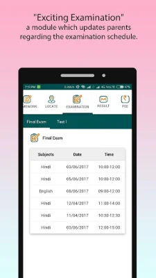 "Exciting Examination" a module which updates parents regarding the examination schedule.