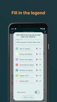 · Color your World: Pick your favorite colors and start painting your map. Add a legend to the map, change its background, or use patterns. Easy and fun!