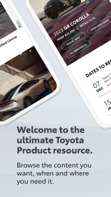 Toyota Engage App also arms you with useful tools to pull up relevant product info when you need it.