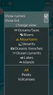 Full list of app learning features: * countries * capitals * flags * emblems * currencies * cities * oceans and seas * rivers * mountains ranges and peaks * deserts * oceanic trenches * ocean currents * lakes * islands